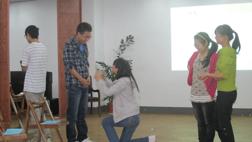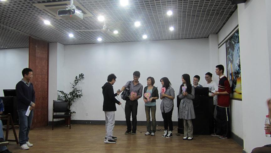 总结之后,晚会文艺部分正式开始。晚会由王敏嘉和刘洋主持,家喻户晓的乡亲类节目非诚勿扰,被文体部改编为内容更为贴近我们的“非雷勿扰”,逗得大家前仰后合;短剧“我们的童年”让我们这些80后、90后的同学在欢笑中回到自己的童年时光;“现代版孔雀东南飞”给了我们一个审视古典文学的全新视角,其中不乏各种笑料。晚会还为大家准备了各种整蛊游戏:“你比我猜”中的词语全部取自大家身边的素材;而从头传到尾的“肢体语言”游戏,着实考验了同学们的表演能力和协作能力;“叠报纸”游戏引发了场上一阵又一阵的尖叫;“时装设计”则充分展示了同学们的想象力和雷人的极限。