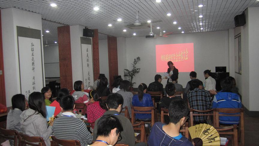 材料系2010届研究生会主席蔡建锋对已经举办的前期活动进行了总结,并细数了接下来的任务,鼓励大家共同努力,在前辈的基础上,打造一个更加优秀的团体。秘书长王晔向大家介绍了2010届研究生会主席团成员。