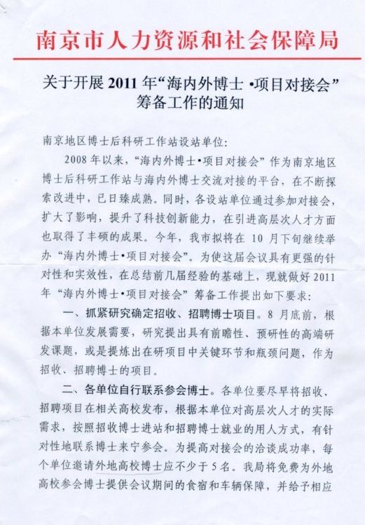 招聘岗位及关于南京市博士对接会的邀请通知: