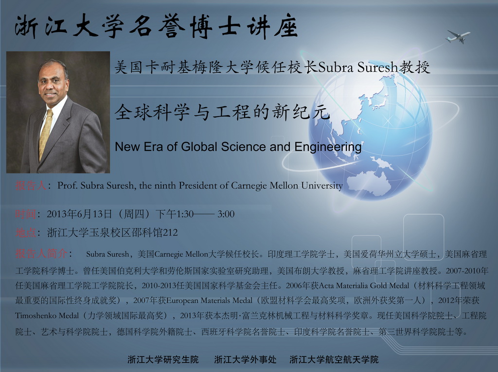 报告人:Prof. Subra Suresh, the ninth President of Carnegie Mellon University