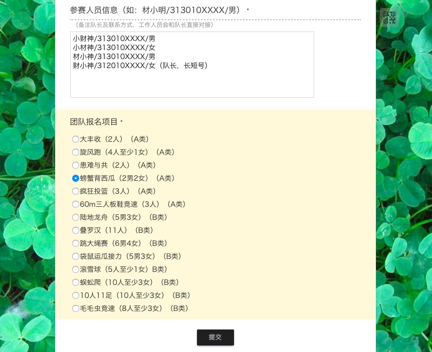 2、个人报名:进入以下链接http://form.mikecrm.com/f.php?t=b7BmOq填写个人信息,学院会根据报名情况安排组队,后续安排将以短信形式与报名者确认。最晚截止4月19日。