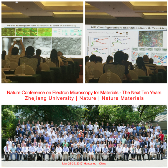 2017年5月27日至29日, 由浙江大学和Nature、Nature Materials共同主办的“材料电子显微技术—未来十年”自然学术会议(Nature Conference on Electron Microscopy for Materials— The Next Ten Years)在杭州花港海航酒店隆重举行。来自中国、美国、德国、英国、法国、澳大利亚、以色列、瑞典、丹麦、比利时、新西兰、奥地利、印度、新加坡、日本等15个国家和地区相关领域的教授、学者、学生以及企业界代表等230余人注册参会,会议得到浙江省自然科学基金委员会、中国电子显微镜学会、FEI、JEOL、TECHCOMP、HITACHI、TESCAN、NION、新材料在线以及测了么网络科技有限公司的大力支持。“记取西湖西畔,正暮山好处,空翠烟霏”,来自世界各地的电子显微学界知名学者在浙江大学百廿华诞之际相聚美丽的西子湖畔,分享科研成果、交流学术经验,共同展望电子显微学与材料科学的美好未来。本次会议也是浙江大学校庆120周年重要学术活动之一。 我院的师生们为本次会议的成功举办付出了辛勤的努力。