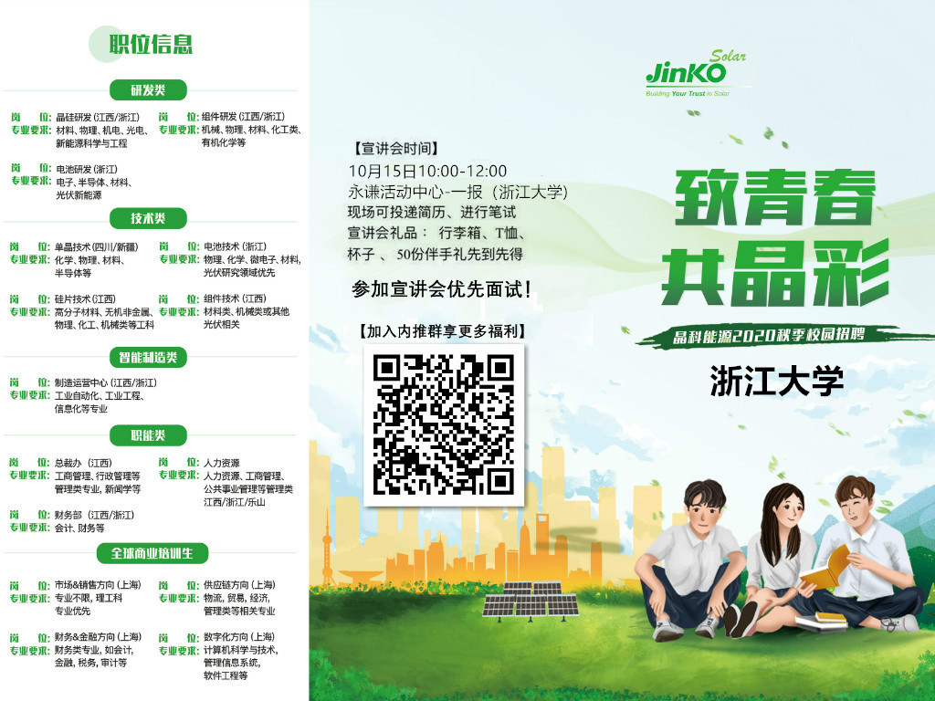 世界领先的太阳能光伏企业—晶科能源2020届秋季校园招聘(浙江大学站)