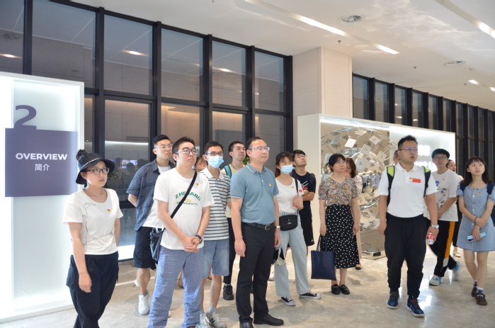 从梦想小镇出发,师生一行乘车前往之江实验室南湖园区参观学习。之江实验室成立于2017年9月,以创建国家实验室为发展目标,以国家目标和战略需求为导向,实行“一体两核多点”运行架构,聚焦前沿基础研究、关键技术攻关和核心系统研发,着力抢占支撑未来智慧社会发展的智能计算战略高点。近年来,已成为浙大学子毕业就业向往的地方。之江实验室南湖新园区总规划面积约1500亩,分两期推进建设。一期工程约650亩,总建筑面积约61万方,已于今年3月正式交付启用。在实验室工作人员带领下,师生们参观了南湖园区一期整体建设、陈列长廊,深入了解了总体情况及发展历程。实验室相关负责人介绍了人才引进政策及科研保障条件,诚挚地向材料学子发出邀请,希望优秀的高学历毕业生能加入之江实验室,共同致力于材料基础研究与成果转化。