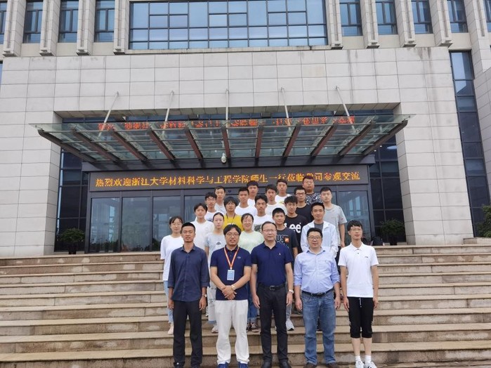 第二天,师生一行前往浙江水晶光电科技股份有限公司进行参观学习和座谈交流。水晶光电的前身是浙大水晶光电有限公司,正式创建于2002年8月,2008年9月在深交所挂牌上市,主要产品包括光学元器件、生物识别、薄膜光学面板、新型显示、反光材料等,是国家级高新技术企业、浙江省隐形冠军企业,更是国内领先、全球知名的大型光学光电子行业研发与制造企业。该公司董事、副总经理盛永江是浙大材料系1995级校友,也是张辉老师的大学同学。