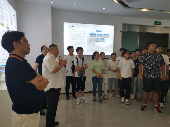 在盛师兄的精心组织安排下,同学们跟随公司讲解员的步伐,依次参观了高科技成果展厅和生产车间。这里的很多概念、仪器、科技成果,都是同学们第一次见到,大家从中了解到诸多先进材料被国外“卡脖子”的问题,体会到科技创新和自立自强的重要意义。同学们听得很认真,踊跃提问,讲解员和张辉老师耐心为大家答疑解惑,大家深感受益匪浅。