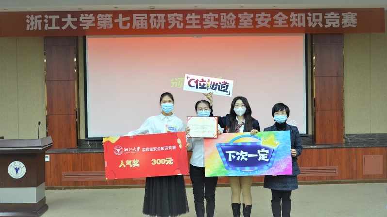 经过激烈的角逐,最终来自医学院的金鹏珍、曾文杉、金新阳所组成的董家军队获得了本次比赛的一等奖。由医学院付慧、陈静、刘晓珍组成的蒙的全队、我院吕岭、朱椿楠、吴遵纯组成的铸工楼安全员队以及电气工程学院朱韬、毛意涵、王喆组成的PMSM队荣获本次比赛的二等奖。而三等奖则由动物科学学院卢辰赫、万涛、朱文青组成的今天有好好搞科研嘛队、我院曾舒莉、夏颖、李卓伦、宋佳汶组成的下次一定队以及医学院张承、刘春晓、王静文组成的春眠不觉晓队获得。根据现场互动拉票环节以及线上投票统计,下次一定队的三名同学用有趣又实用的实验安全视频荣获了最佳人气奖。