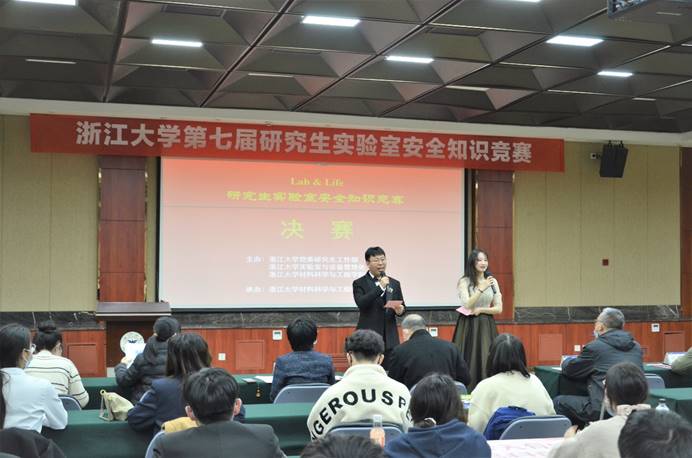 为进一步普及实验室安全知识、培养安全防范技能、强化实验人员安全意识、深化实验安全理念,12月16日下午,第七届浙江大学研究生实验室安全知识竞赛决赛在玉泉校区邵科馆成功举行。浙江大学玉泉校区管委会主任马银亮,实验室与设备管理处副处长、安保处副处长胡凯,实验室技术安全管理办公室主任张银珠,消防安全管理办公室主任顾冬健,我院党委副书记王育萍,我院实验室主管应窕,我院团委书记、研究生辅导员李由作为嘉宾和评委出席本次活动。活动由包晨琛、岳慧同学主持。