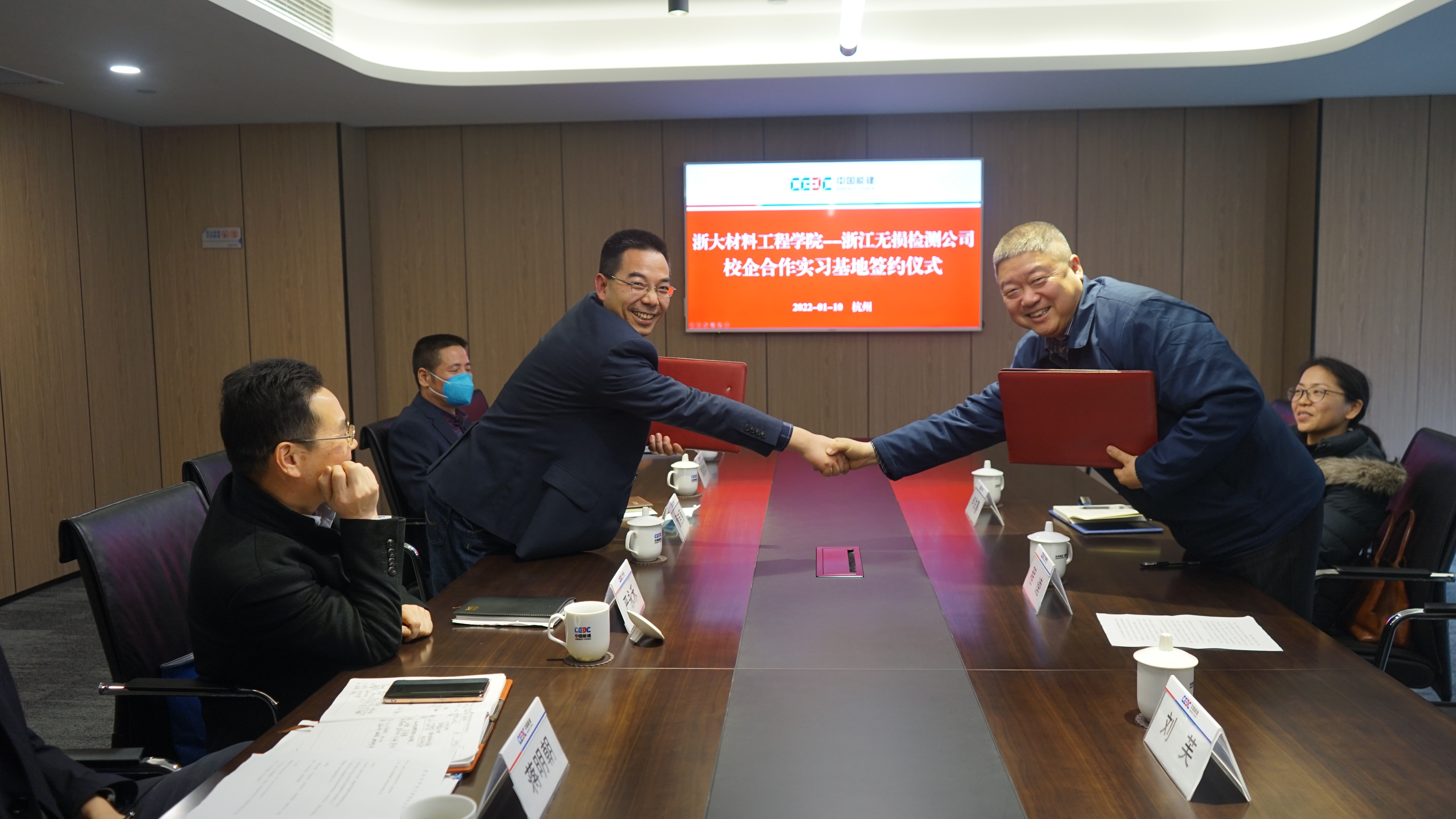 我院与浙江火电无损检测公司曾有过多次业务和学术方面的交流与合作,2021年7月,我院2019级本科生70余人曾到浙江火电无损检测公司开展现场实训。本科生企业实习培训能使学生在实际工作环境中进一步增强对专业的感性认识,巩固所学的基础理论知识。本次签约过程中,程逵副院长表示材料专业本科生培养要着眼于大学科,将向高端目标发展与为产业服务相结合,进一步深化落实校外企业环境的实训。严永禾书记也表示目前公司的业务正在向非电力领域突破,期待与浙大我院进一步开展深入的合作。无损检测公司是电厂新材料应用及研究的主要单位,我院与无损检测公司的交流与合作既能促进我院本科生实践能力与理论知识的融合,也有利于推进电厂新材料的研究与探索。期待本次校外实习基地的建立能够实现学校与企业之间优势互补、资源共享、共谋发展。