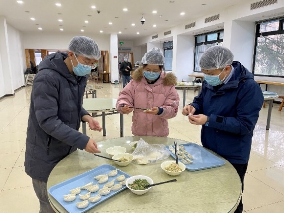 最后,为让留校学子更加感受到节日的氛围和温暖,学院还特地组织了包饺子活动。师生一同前往小乐惠餐厅,欢聚一堂包饺子,其乐融融。大家相互交流着不同的包法及家乡的过年习俗,手中的饺子形态各异。也不乏一些新手同学,在师生一步步的教学下,包得有模有样。不一会儿,一盘盘热气腾腾的饺子就出锅了。师生们一边话新年,一边美滋滋地品尝着自己的成果,在这热热闹闹的气氛中活动圆满结束。小小饺子香,浓浓新春情。虽无法归乡团圆,却也有家的温暖。