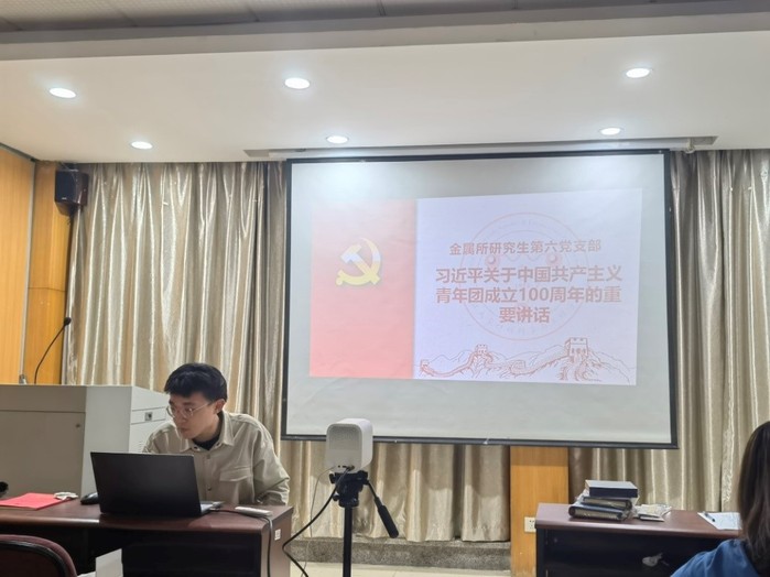 2022年5月18日晚19:30,bwin必赢金属所研究生第六党支部在铸工楼C204会议室组织学习了习近平总书记关于中国共产主义青年团成立100周年的重要讲话,由贾喻晓同学带领大家进行学习。
