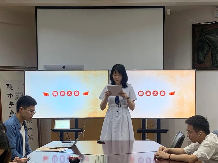 刘哲同志宣读了转正申请书,总结了自己作为预备党员期间各方面的情况,阐述了自己在政治思想、科研学习、日常生活等方面的改变和进步,并深刻反思了自己目前尚存的不足,表达了改正的决心,为自己即将成为一名光荣的党员感到激动不已。