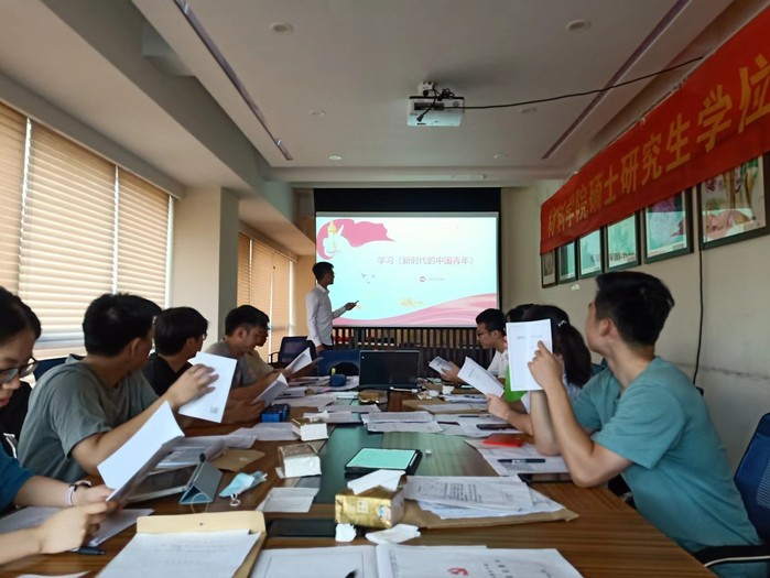 在接收大会结束后,由组织委员聂群霖带领全体党员同志进行了《新时代的中国青年》小册的学习。青年是整个社会力量中最积极、最有生气的力量,国家的希望在青年,民族的未来在青年,中国青年始终是实现中华民族伟大复兴的先锋力量。聂群霖同志娓娓道来,激励同志们追求远大理想,与家国同呼吸、共命运。