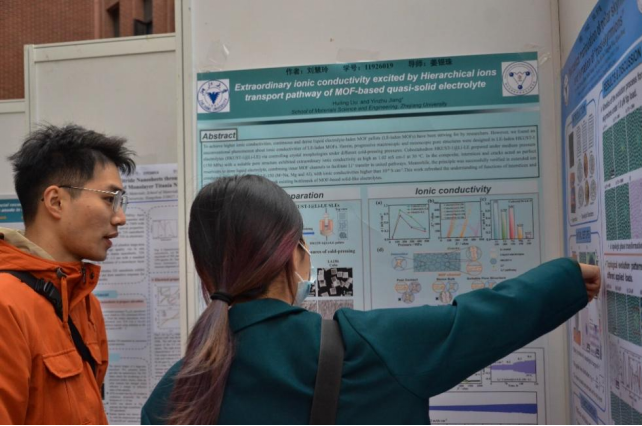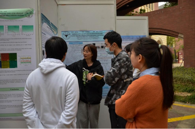 随后,活动进入自由讨论与展示环节。寒风凌冽吹不散老师和同学们的热情,参展的研究生们向前来观展的师生详细介绍,并就自己研究领域的相关问题进行互相探讨,现场讨论声此起彼伏,交流热烈。