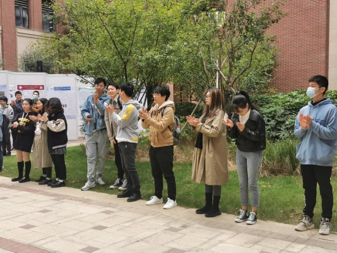 图4 同学们热烈鼓掌庆祝墙报展开场