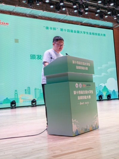 历经三天鏖战,浙江大学一举包揽本届大赛两条赛道的最高荣誉。屠有德同学以总分第一获得第一赛道最高荣誉“徕卡特别奖”,李越同学以总成绩第一获得第二赛道最高荣誉“永新特别奖”,丁建焱同学荣膺“永新优胜奖”。团体战绩方面,浙大夺得第一赛道团体一等奖、第二赛道团体总冠军;个人奖项再添4项一等奖、2项二等奖,创浙大参赛历史最佳成绩,并创造了同一高校同时包揽两大赛道个人最高奖的记录。颁奖典礼上,屠有德作为“徕卡特别奖”得主在学生代表发言环节登台。
