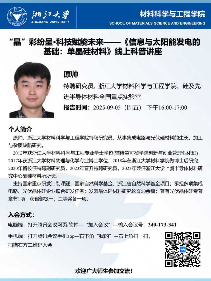 “晶”彩纷呈 科技赋能未来-《信息与太阳能发电的基础:单晶硅材料》线上科普讲座