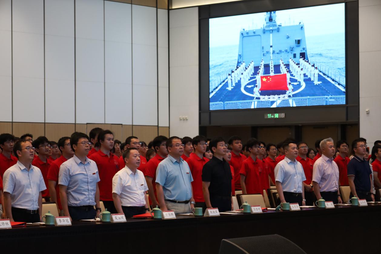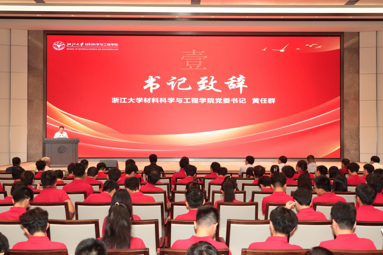 在会议正式开始前,全体与会成员齐唱中华人民共和国国歌,神情庄重,在铿锵旋律中感受着国家发展的壮阔征程,歌声饱含“树我邦国”的家国情怀,激励众人将个人理想与民族复兴紧密相连,让在场新生更直观地感受到身为浙大人、材料人的责任担当。