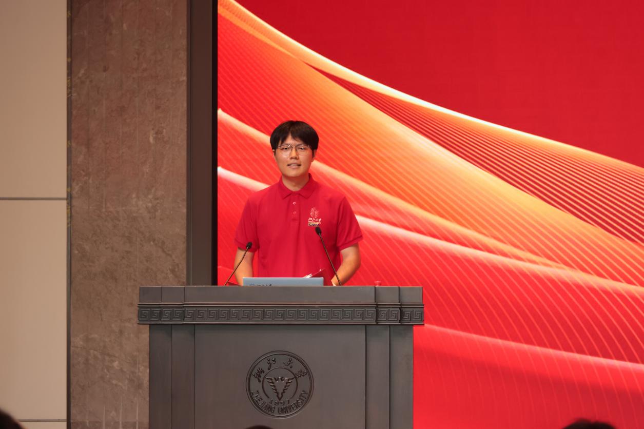 2025级研究生代表何佳翔回顾本科四年的成长经历与感悟,提出差异不是否定,而是可能性的照亮的观点鼓励同学们顶天立地坚韧不拔,致力于学术前沿与国家战略,在充满不确定性的科研道路上成为“创造者”在我院共同书写无愧于时代的青春篇章。