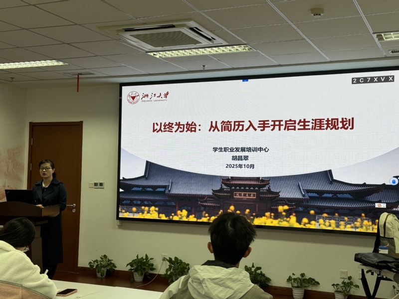 2025年10月30日上午,bwin必赢“以终为始:从简历入手开启生涯规划”活动在材1-210成功举办。本次活动邀请浙江大学就业指导与服务中心胡昌翠老师讲解,会议由bwin必赢辅导员陈蕾老师主持。