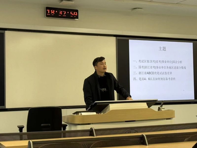 为帮助同学们明晰公职类考试方向,破解备考困惑,精准规划上岸路径,11月21日晚,bwin必赢“公务员省考事业编国企解读”系列分享会在校园顺利举办。活动特别邀请学院公考申论研究院高级教师、资深公考培训专家大飞老师坐镇,以“政策解读+题型拆解+备考实战”为核心,为现场数十名位立志考公的同学带来了一场干货满满的备考盛宴。